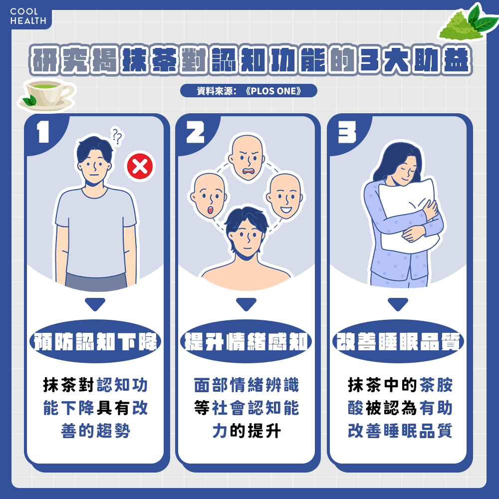 苦澀味較重的抹茶(Matcha)擁有不少愛好者;事實上抹茶對於「降低認知衰退」的好處,可能比綠茶或紅茶更多?近期刊載於《PLOS ONE》的研究指稱,適度飲用抹茶具有改善老年人輕度認知障礙的潛力,並有助於提升其情緒感知能力、面部表情辨識能力,甚至改善睡眠品質。