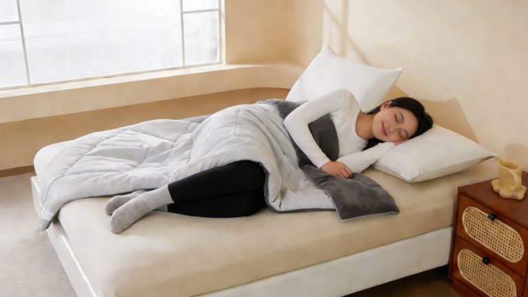 旅程結束的第一晚,真正的休息才剛開始。洗完澡、換上輕鬆的居家衣物,躺進床裡時,那種從外在移動回到安靜空間的轉換特別明顯。抱著天絲熱導被,親膚柔軟的觸感與蓬鬆的包覆感,讓身體在不知不覺中慢慢放鬆。當溫度穩定、壓力卸下,整晚睡眠成為身體重新整理與恢復的時間。隔天醒來時,旅途累積的沉重感也會淡去一些。