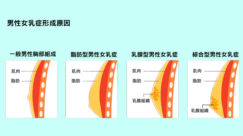 一種是脂肪型女乳,多見於體脂偏高者,因脂肪集中於胸部導致胸型圓潤;另一種是乳腺型女乳,源於荷爾蒙比例失衡,乳腺組織異常增生,使乳暈下方出現明顯隆起或壓痛感。