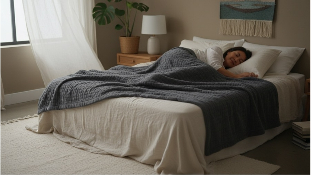 另外也可將臥室打造成深度療癒空間,部分使用者除了重視床墊、枕頭之外,適度的深層壓力刺激(Deep Pressure Stimulation),均勻且穩定的觸感,可能與部分使用者的放鬆感受有關。在睡眠應用上,重力毯(加重毯)即是運用此原理的代表性產品,能幫助使用者更快進入放鬆狀態,提升整體睡眠品質。