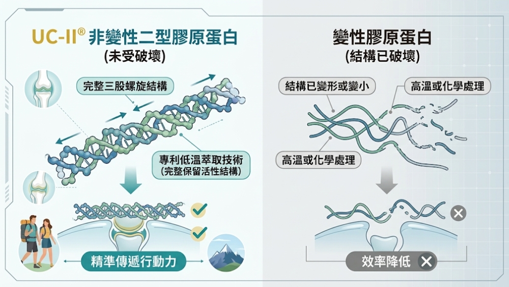 圖說:選擇具有專利技術萃取的UC-II,能保有完整膠原結構,針對靈活度精準補給。