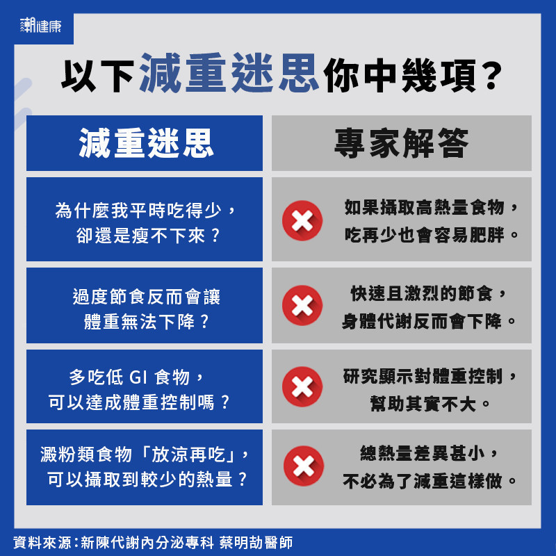 明明少吃多動卻無法減重,是因為意志力太薄弱?蔡明劼醫師認為,減重的根本是正確方法,其次才是意志力。如果只憑意志力卻採取錯誤減重方式,例如拚命節食,很容易出現精神不濟、月經混亂等症狀。或是持續採取激烈的生酮飲食,容易增加膽固醇上升與心血管問題,對健康並非好事。
